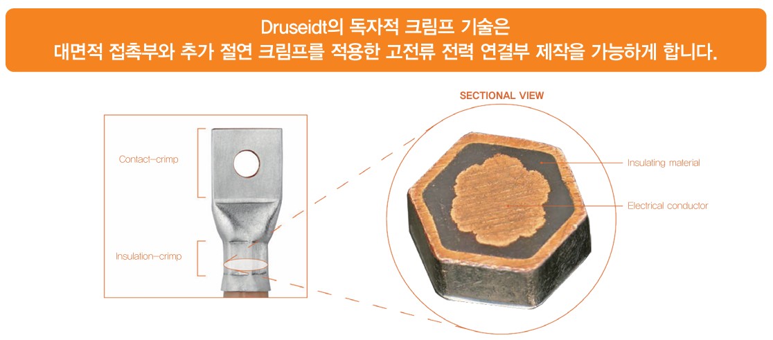 • 추가 절연 크림프는 진동 발생 시 굽힘 응력이 절연층 내부에서