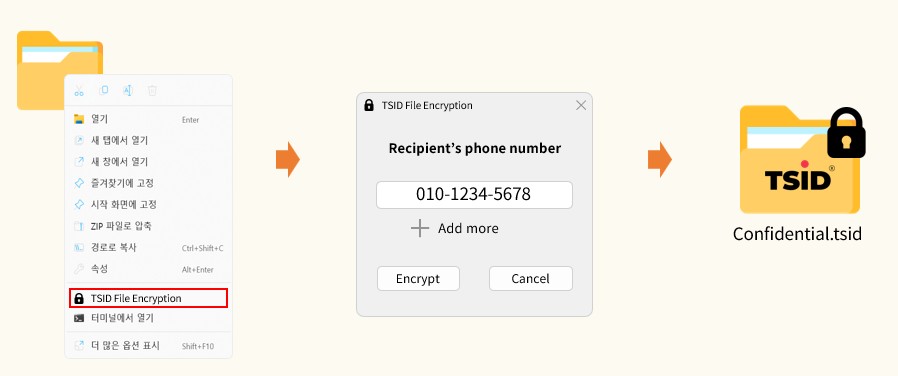 * 암호화 후 파일은 .tsid 확장자로 자동 변환